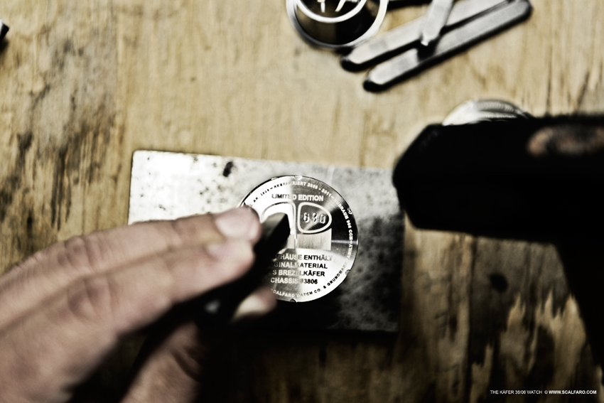 In collaboration with the Grundmann Family – collectors and restorers of rare vintage Volkswagen – the Scalfaro Team created a unique edition of timepieces including original material from the iconic Käfer – VW38 (Chassis #38/06).