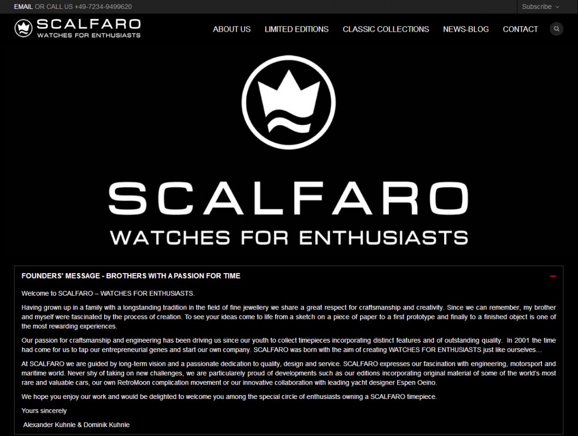 We hope you enjoy the new design and layout of our new website. The new Scalfaro.com features a plethora of information, images and background stories on our timepieces and our company.